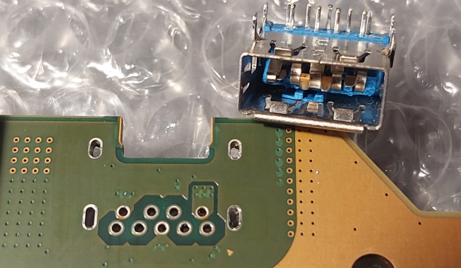 Затем был заменён USB порт — демонтирован повреждённый и установлен новый.